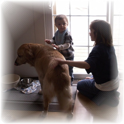Aidan never had seen Brett and Heather’s dogs before and he was thrilled with them…both dogs are the same kind.